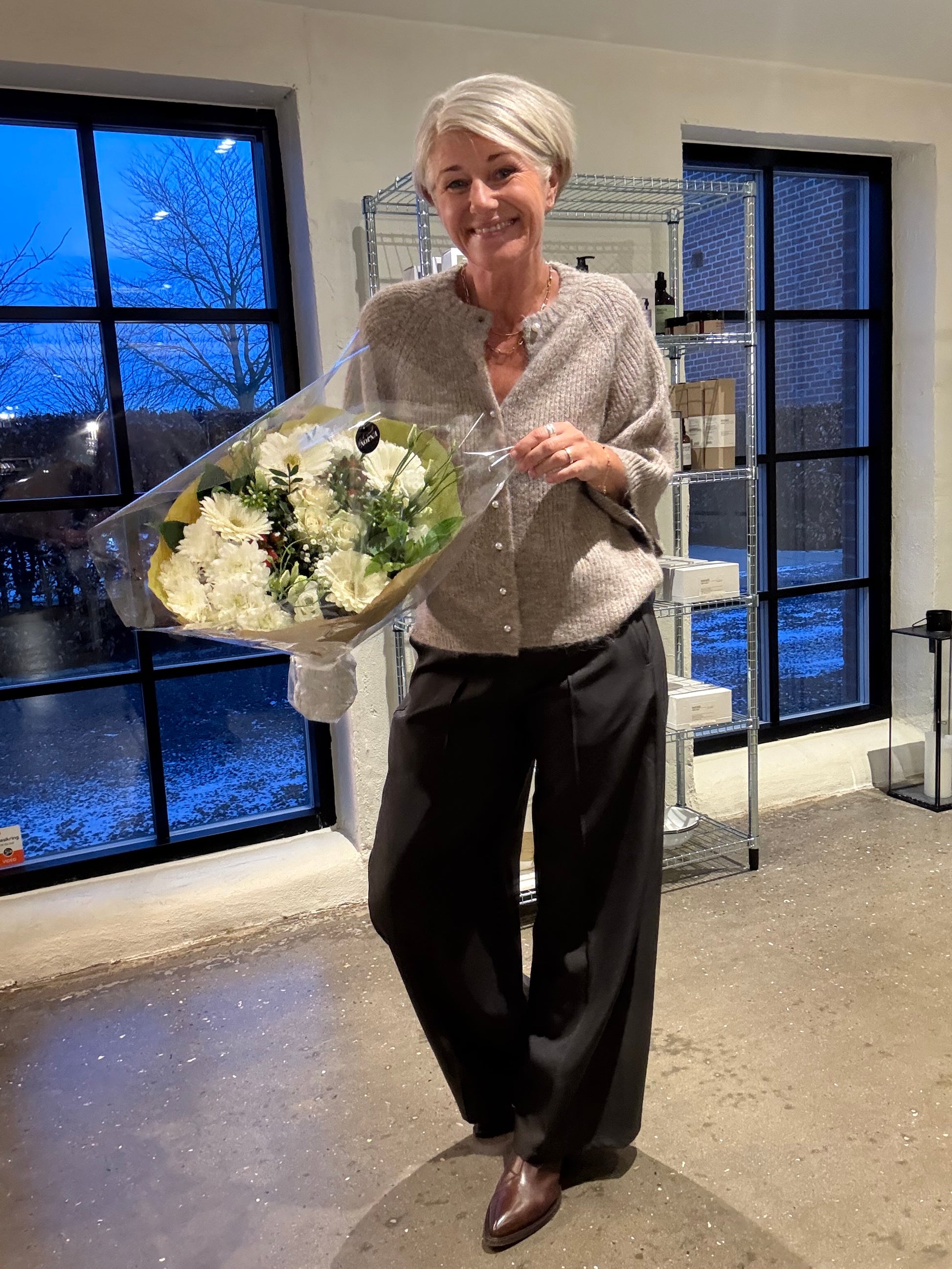 Boksformet strikket cardigan med brede ærmer og fine dekorknapper fortil. Kvaliteten er blød med et fluffy udseende