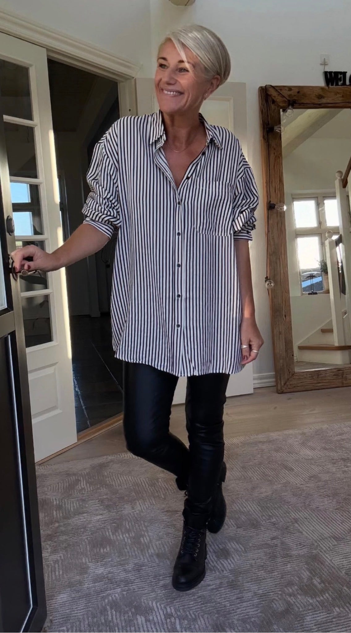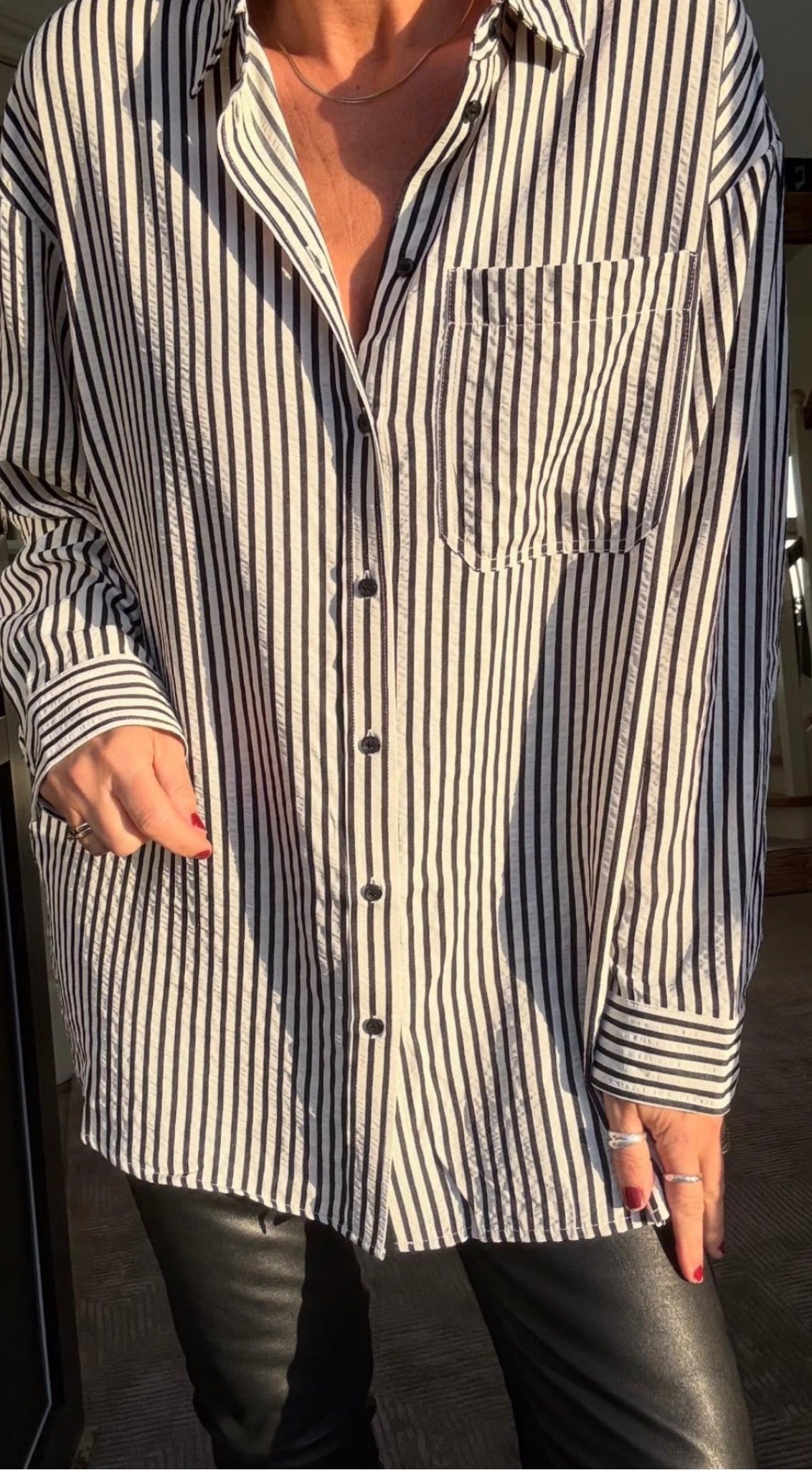 Stribet skjorte fra Ichi i oversized look.