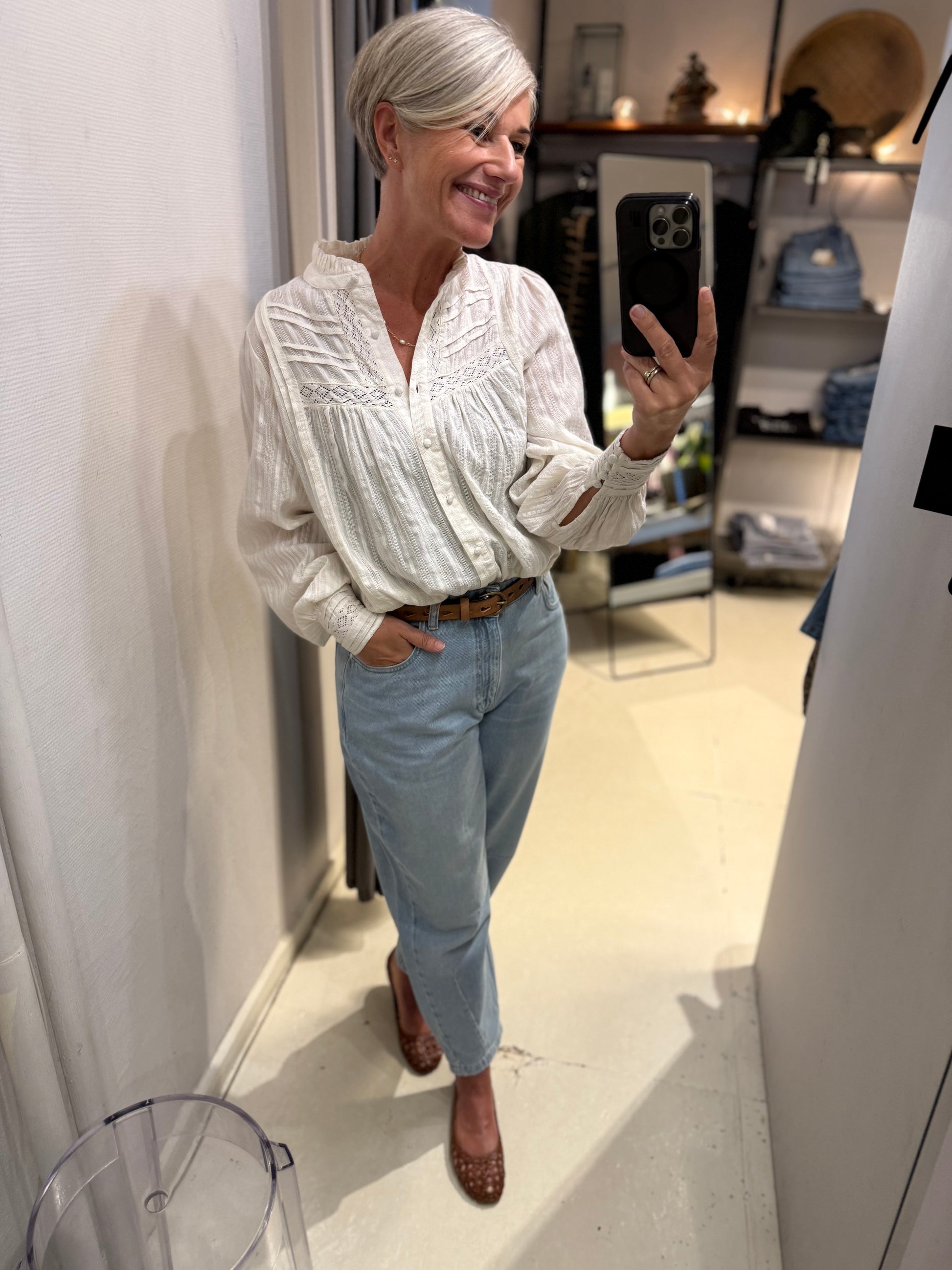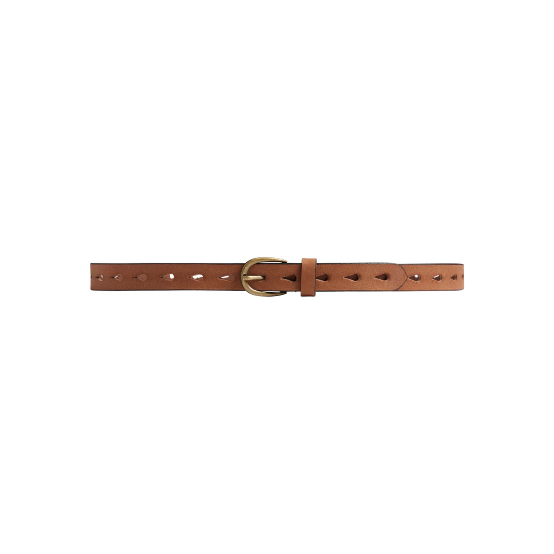 Forfin dit outfit med dette elegante skindbælte, fremstillet i 100% kvalitetsskind. Bæltet har hele vejen rundt ovale udstansede huller, som skaber et råt og samtidig smukt look. Det klassiske spænde fuldender designet og gør bæltet alsidigt, perfekt til både hverdag og mere formelle anledninger.