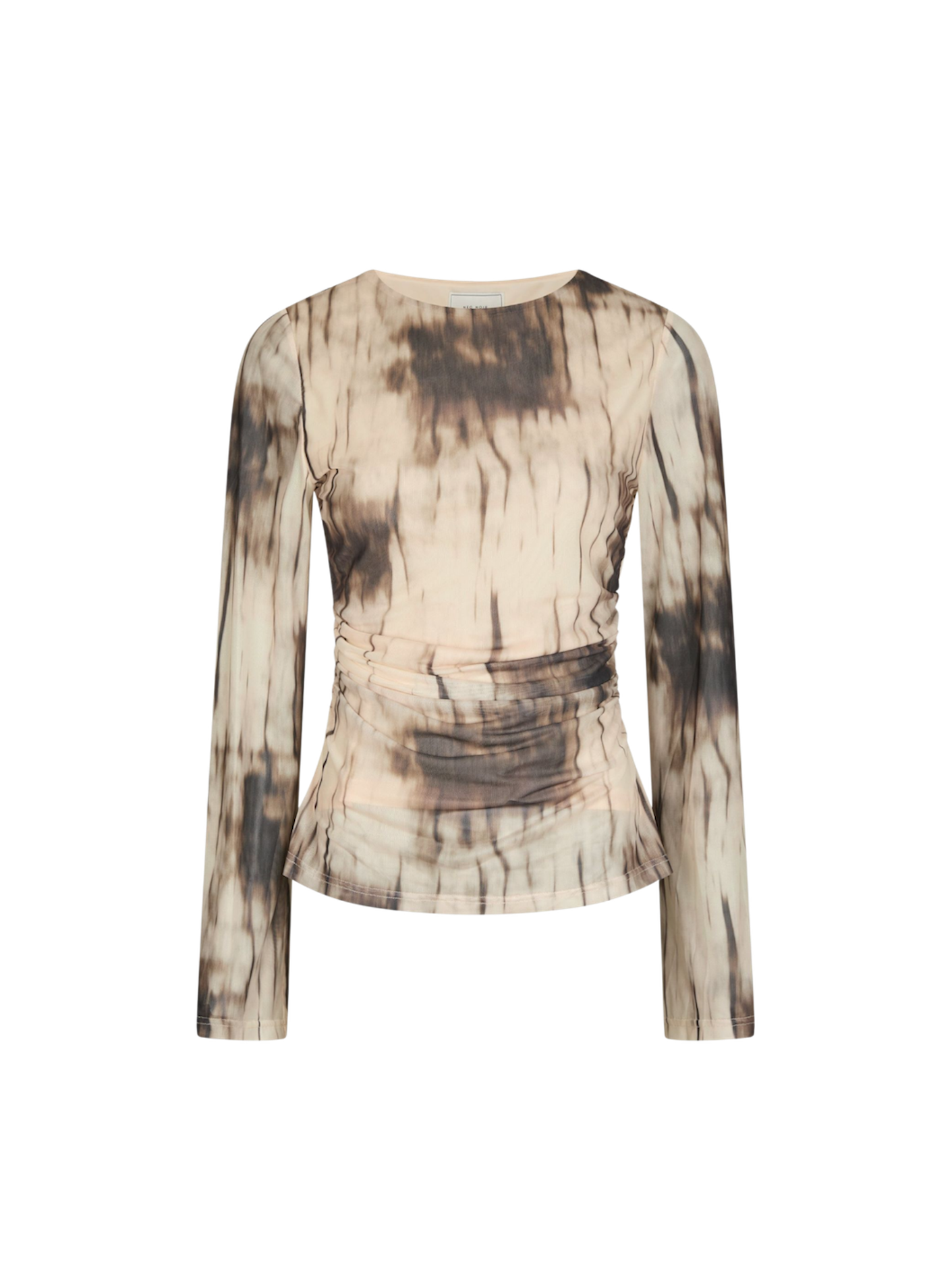 Langærmet bluse med rund hals. Ærmerne har vidde i bunden og blusen kommer i en mesh kvalitet med et smukt print.