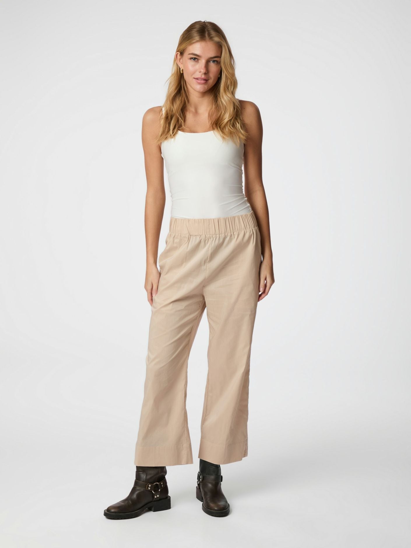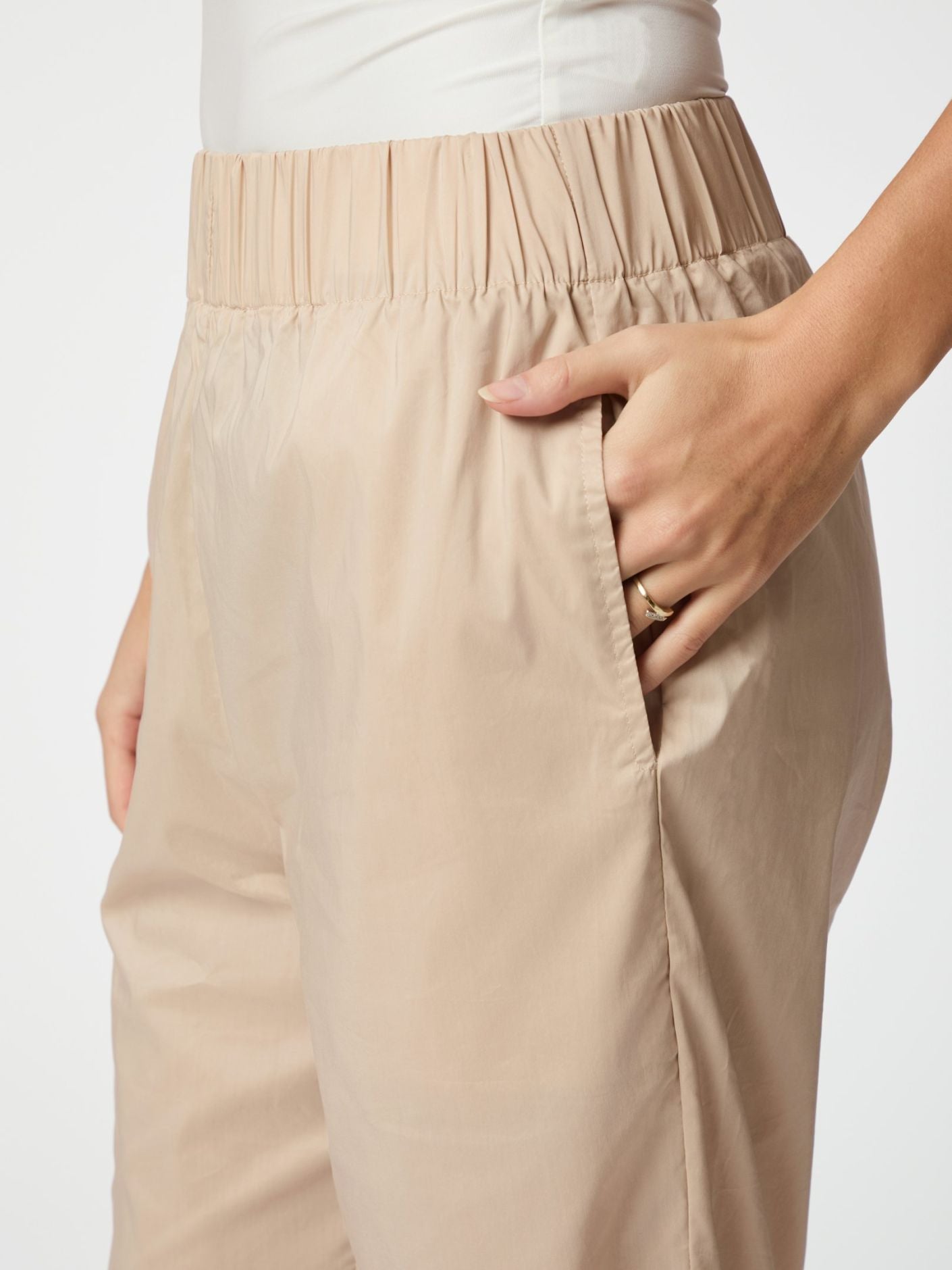 Cool bukser i en lækker bomulds poplin med høj elastik i taljen og lommer i siden foran.