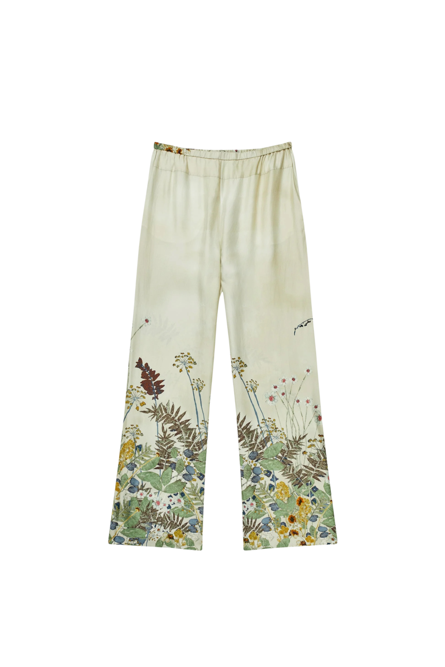 Bukser lavet af 100% silke, designet med et elegant print, som er lavet af blomster Naja Munthe har plantet i sin egen have. Disse bukser har lommer og en bindebånds detalje i taljen.