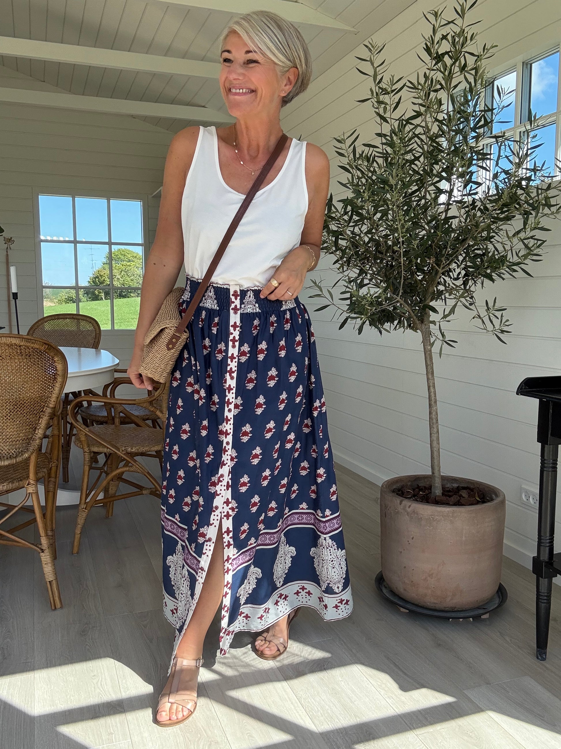 Love445-2 er en tanktop i en blød viskosekvalitet med en dyb rund halsudskæring. Toppen har en løs og luftig pasform.