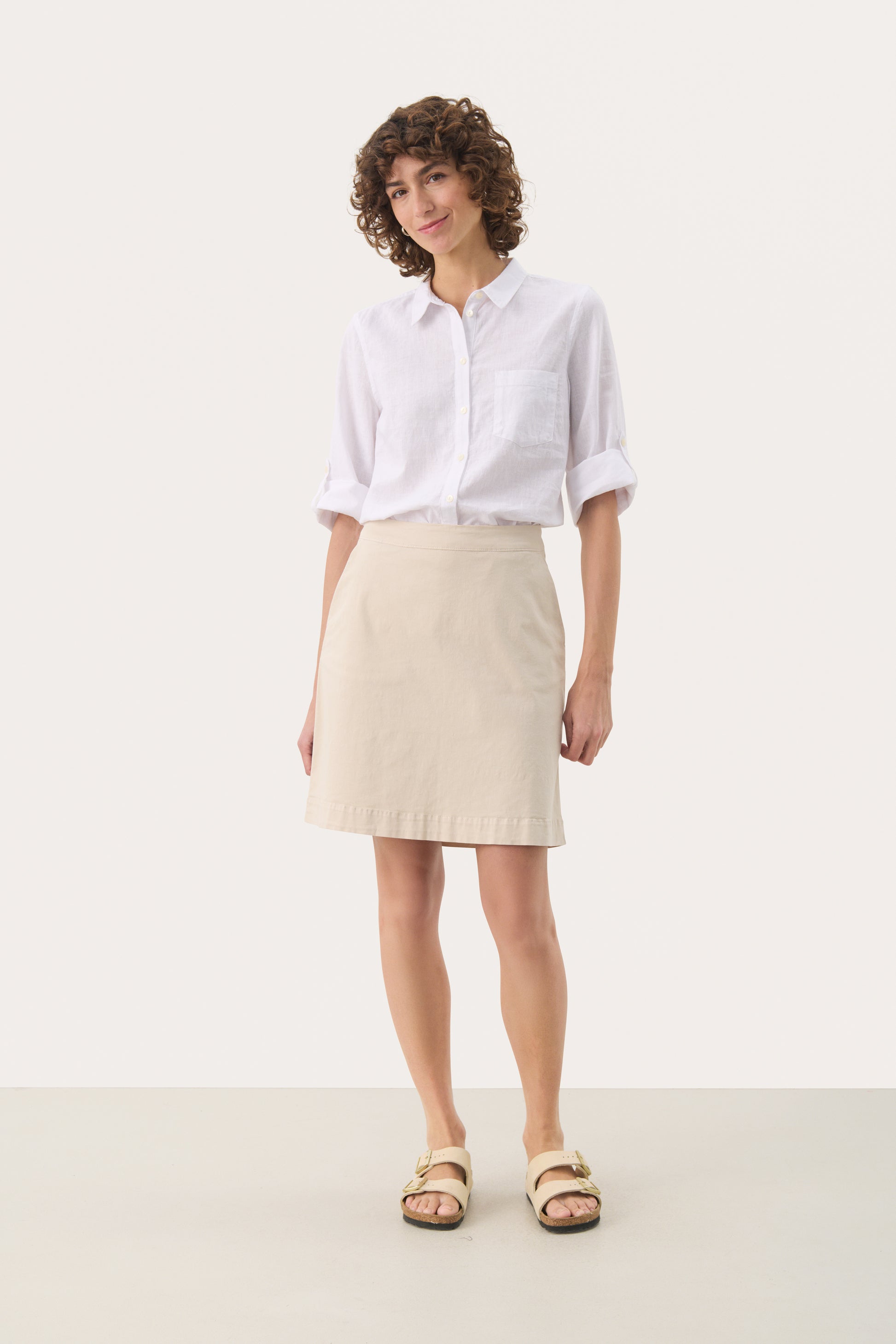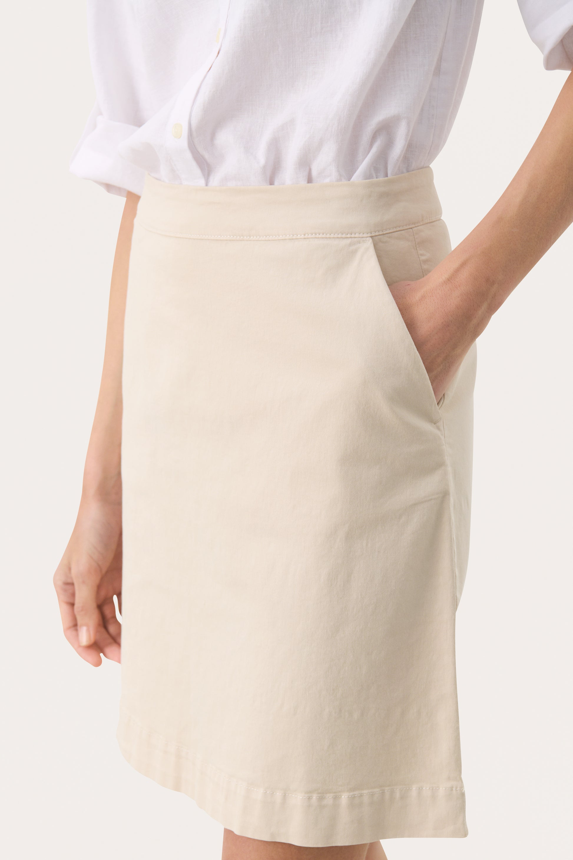 Enkel og klassisk nederdel fra Part Two. Nederdelen er knælang og har lynlås bagtil.