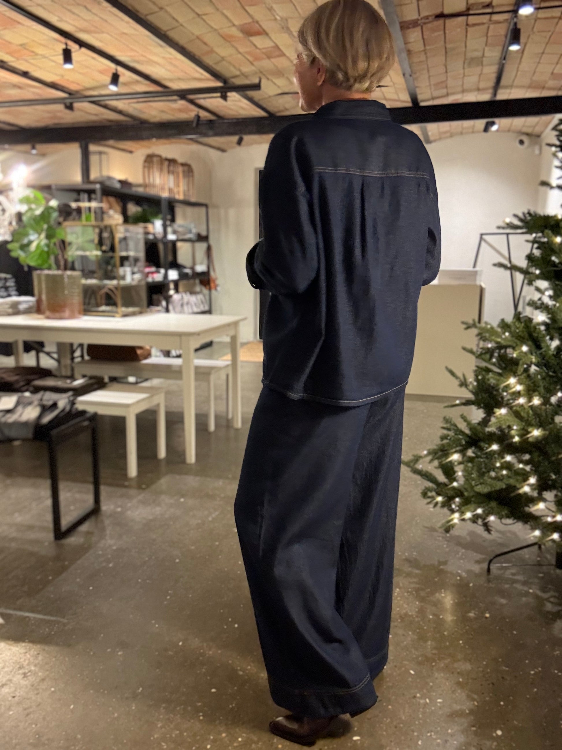 Denim bukser fra ichi i Loose fit, med matchende overdel.