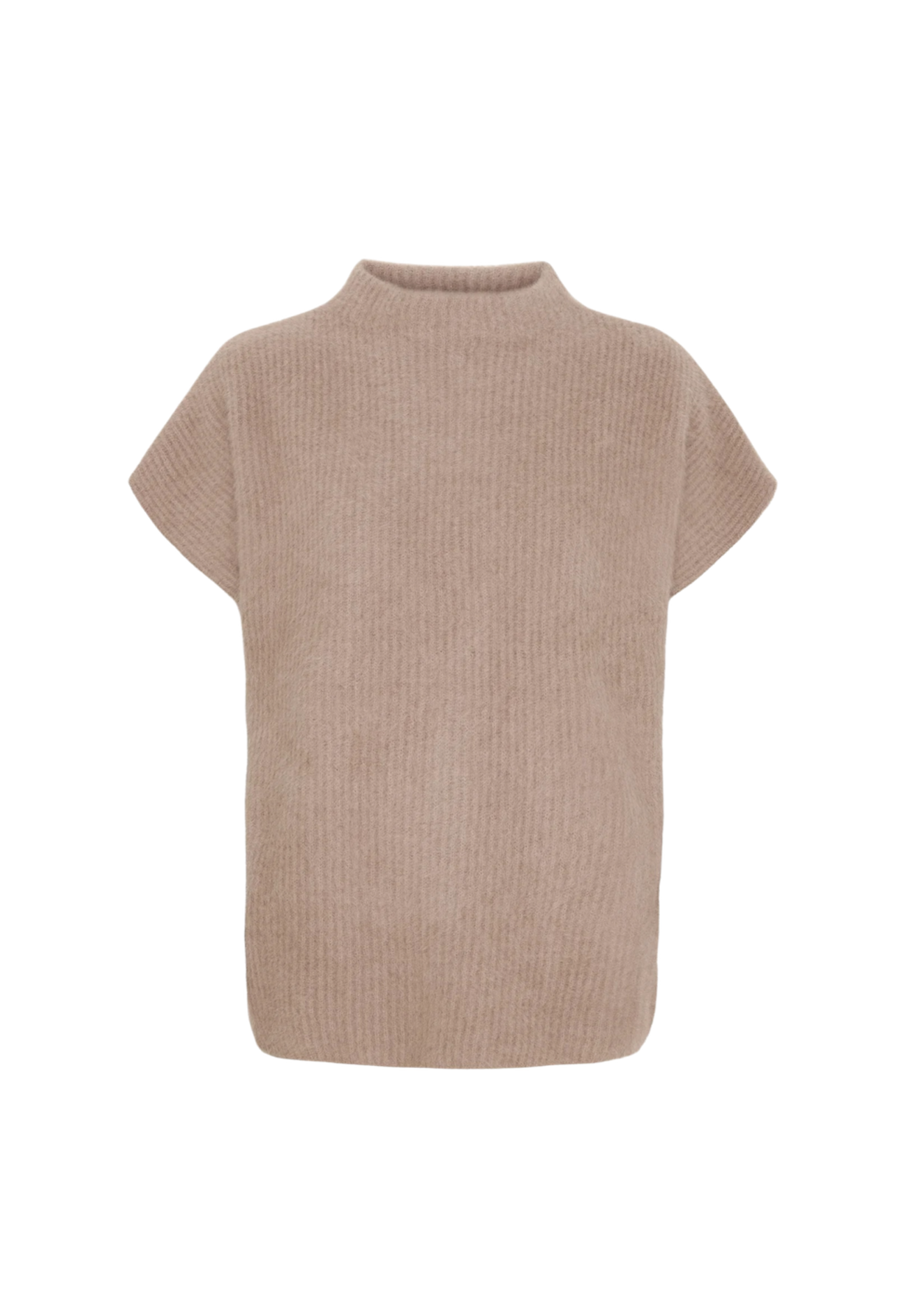 Oplev den blødeste strik, lavet af en eksklusiv blanding af cashmere og vaskebjørns-garn. Blusen har en elegant lille høj hals og korte ærmer.