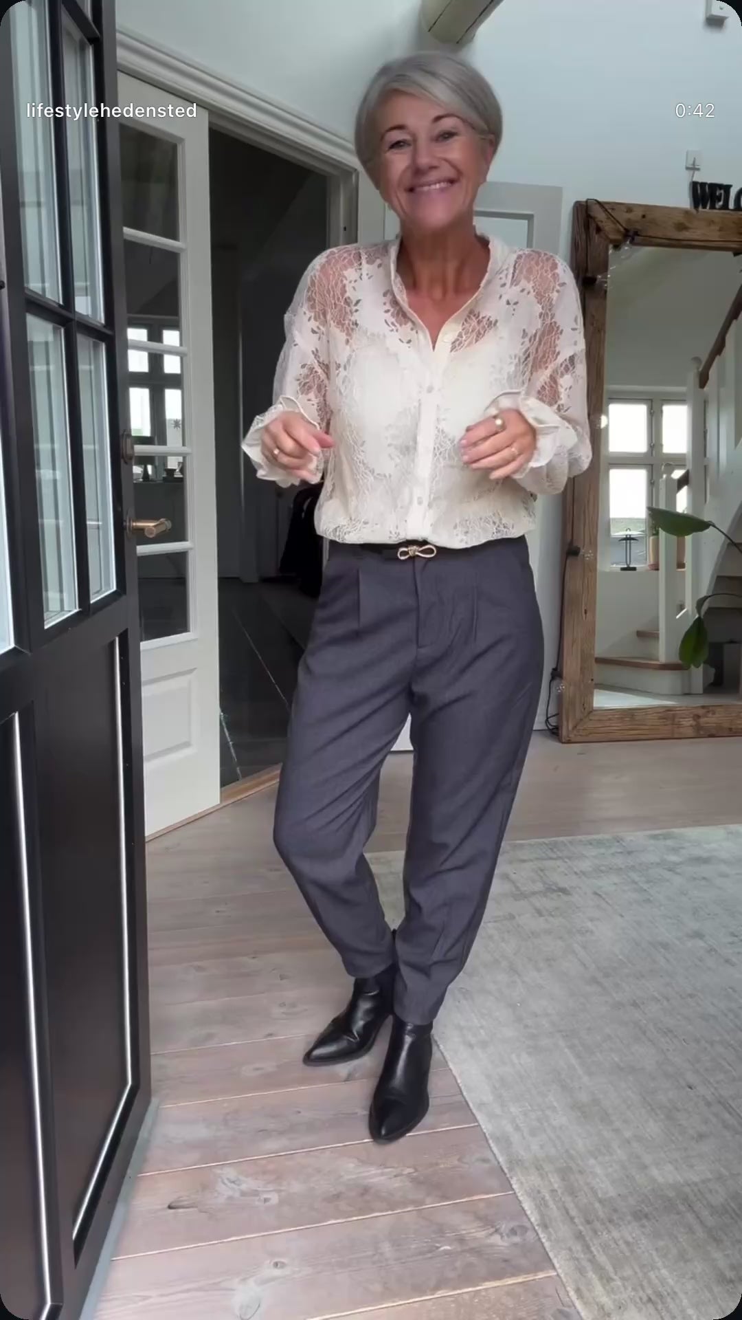 Love1470 er en langærmet skjortebluse i blomstret blonde med en gennemgående knaplukning og en flæsekantet krave. ærmerne har manchetter med flæsedetaljer.