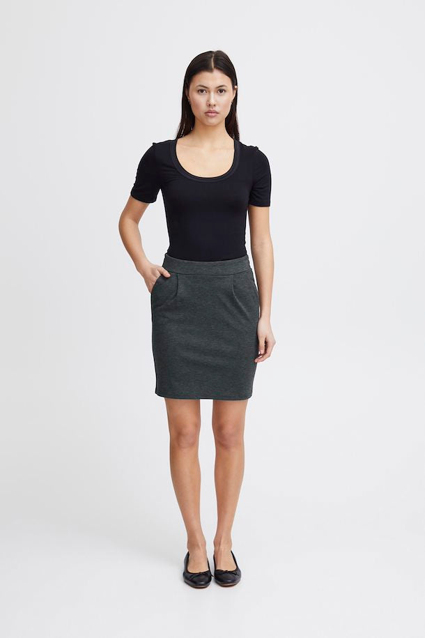 Leder du efter en sofistikeret og elegant tilføjelse til din garderobe? Så er vores IHKate nederdel lige præcis det, du har brug for. IHKate nederdelen er fremstillet af en blanding af polyester, viskose og elastan, der sikrer at nederdelen både er behagelig og holdbar. Den passer perfekt med en hvid skjorte eller en trendy bluse.