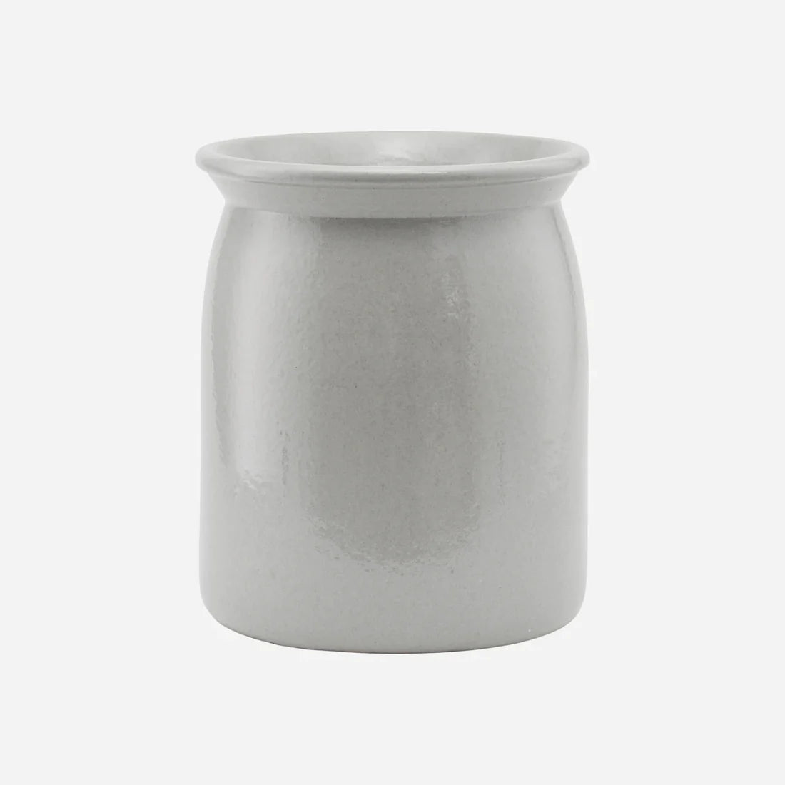 Denne lille krukke fra Meraki giver med sit rustikke look og den kølige farve dit badeværelse et cool og raffineret look. Den har en flot grå glasur, som giver et unikt spil i overfladen. Brug krukken til at opbevare mindre håndklæder makeup børster eller placer den på gulvet med en buket evighedsblomster. Obs: Finish på dette produkt kan variere.