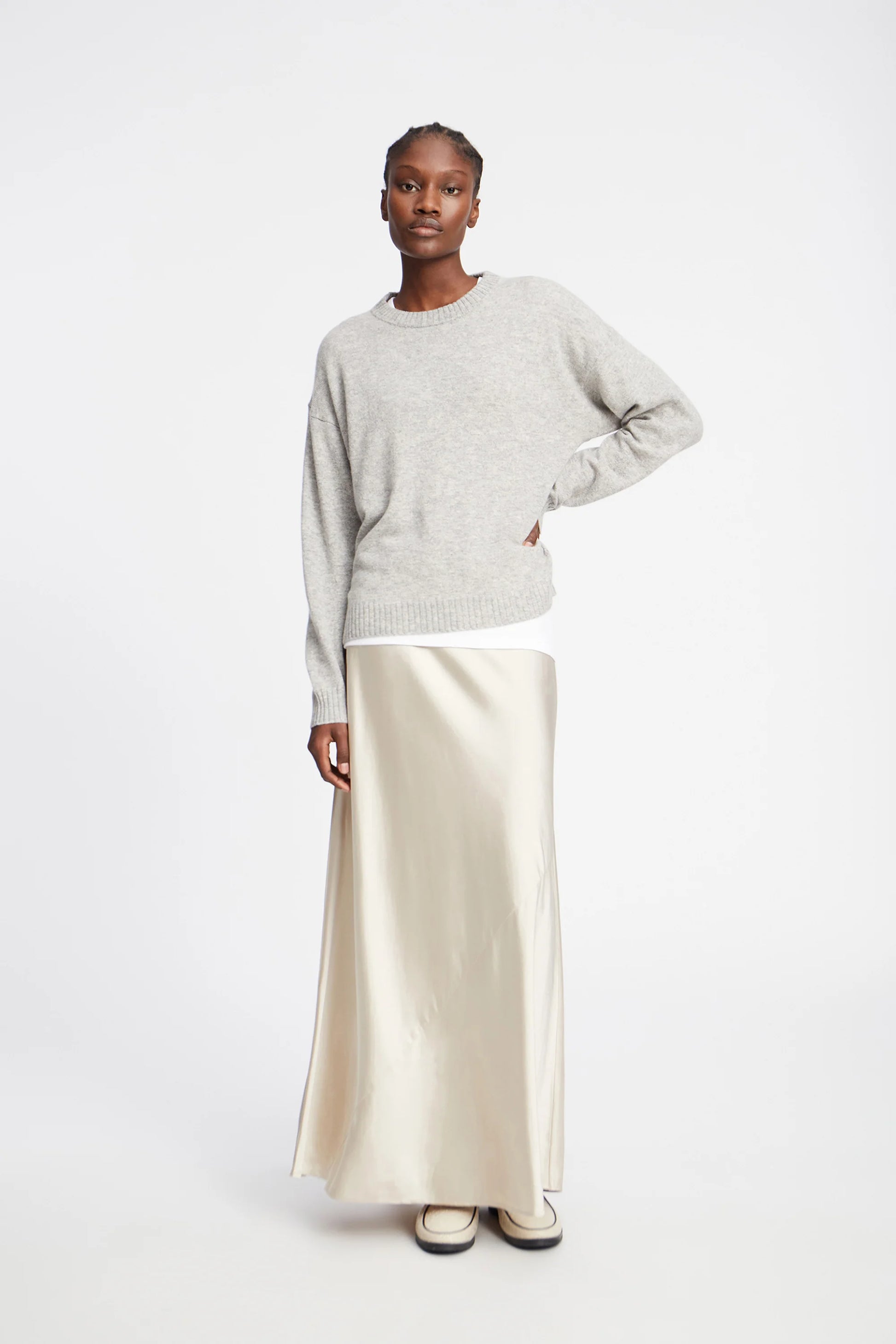 Lækker blød kashmirs strik fra Munthe med rib kant ved halsen.