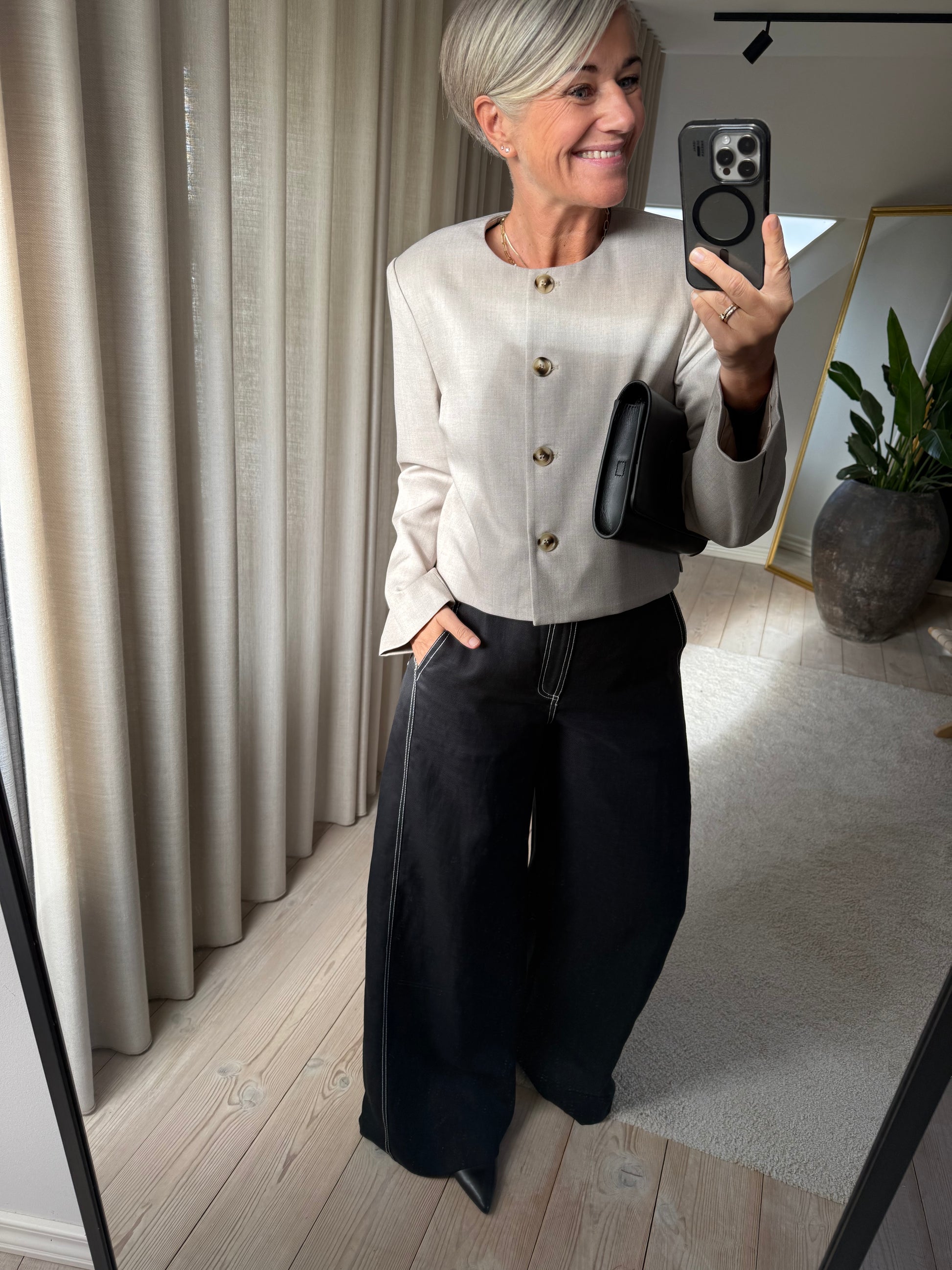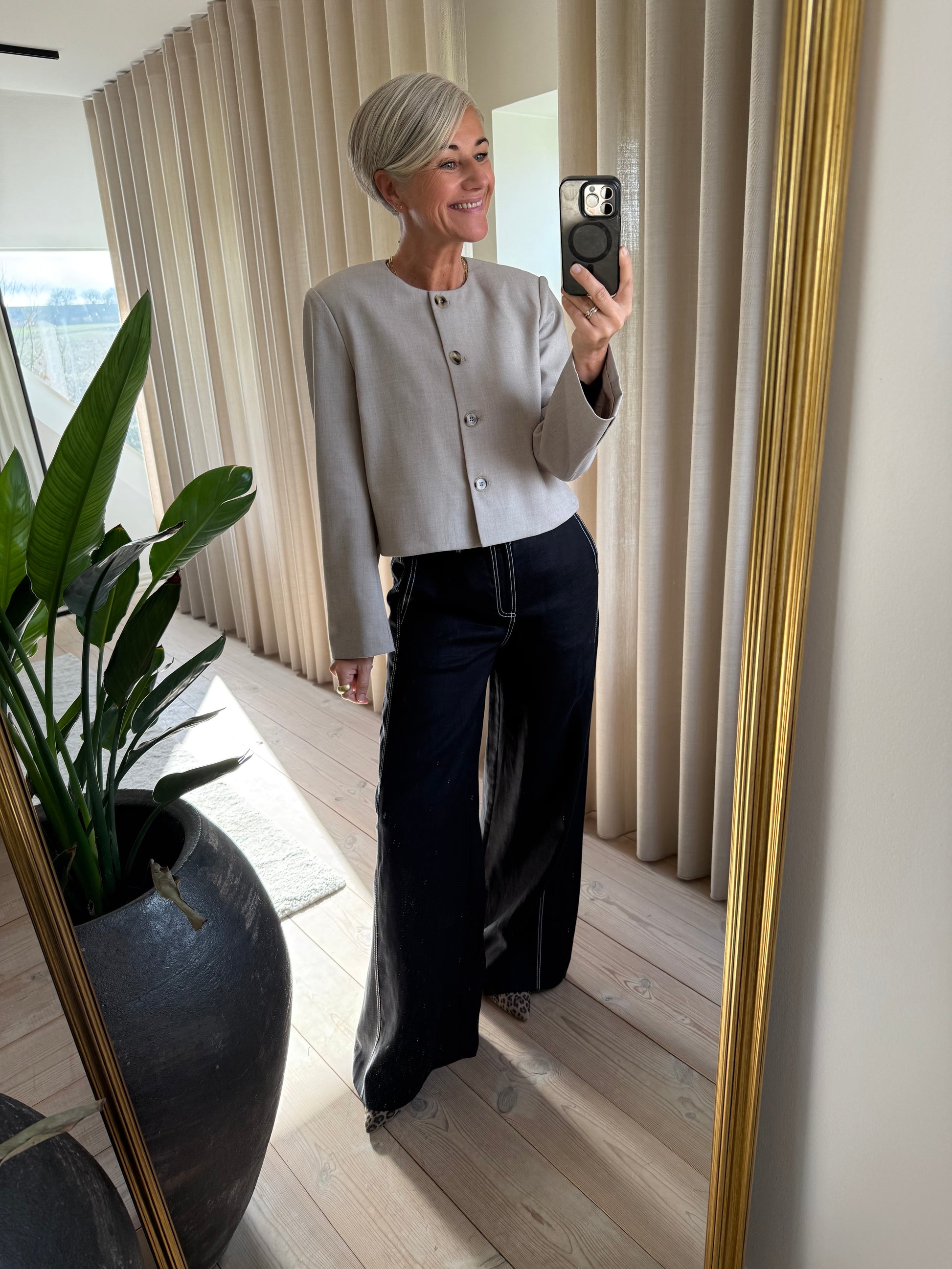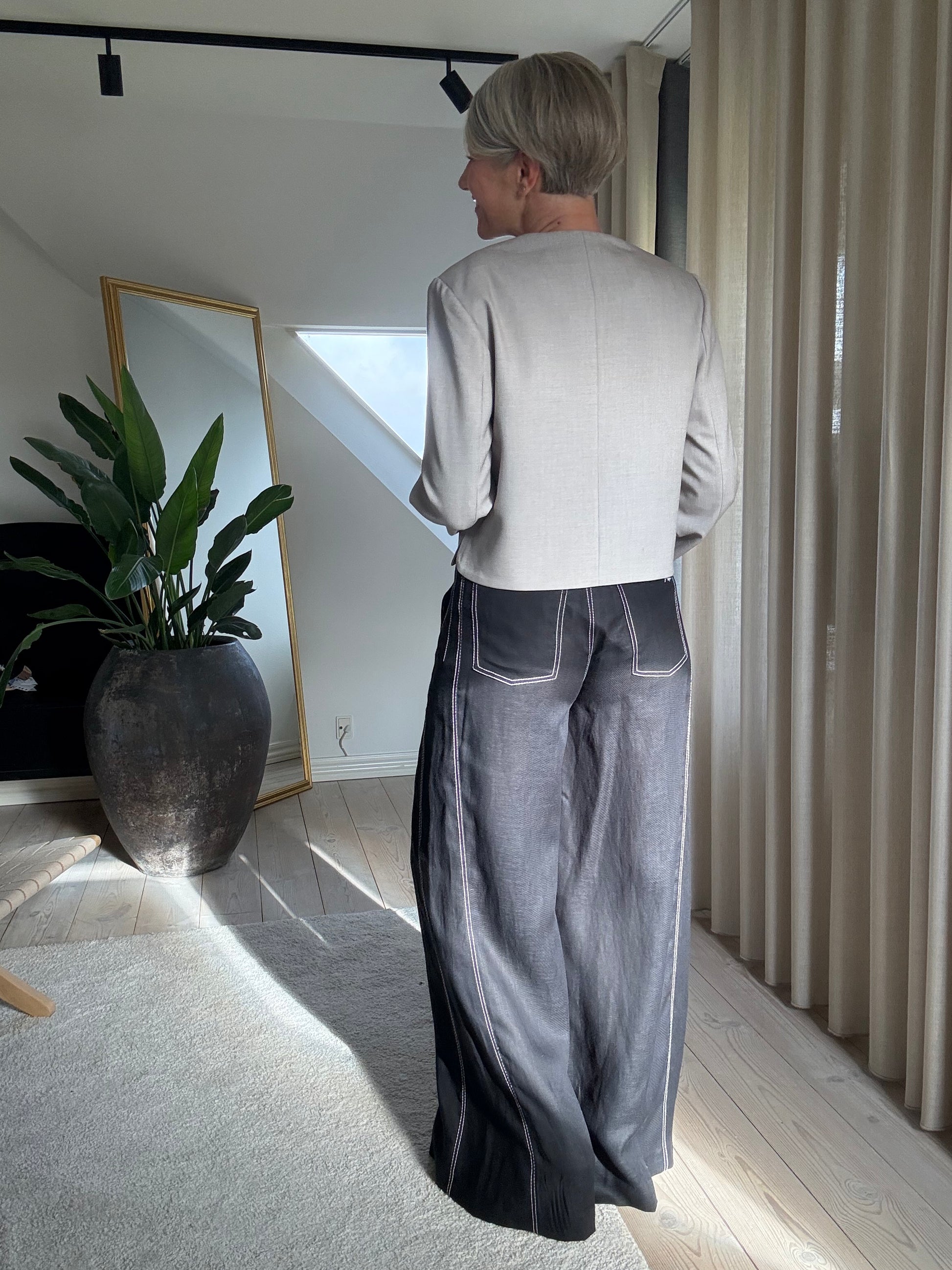 CMNATULI-PANTS er et par højtaljede bukser i en eksklusiv kvalitet af 100% hør med monokrome kontraststikninger. Bukserne har desuden knap- og lynlåslukning, vide bukseben samt en lille logodetalje på baglommen.