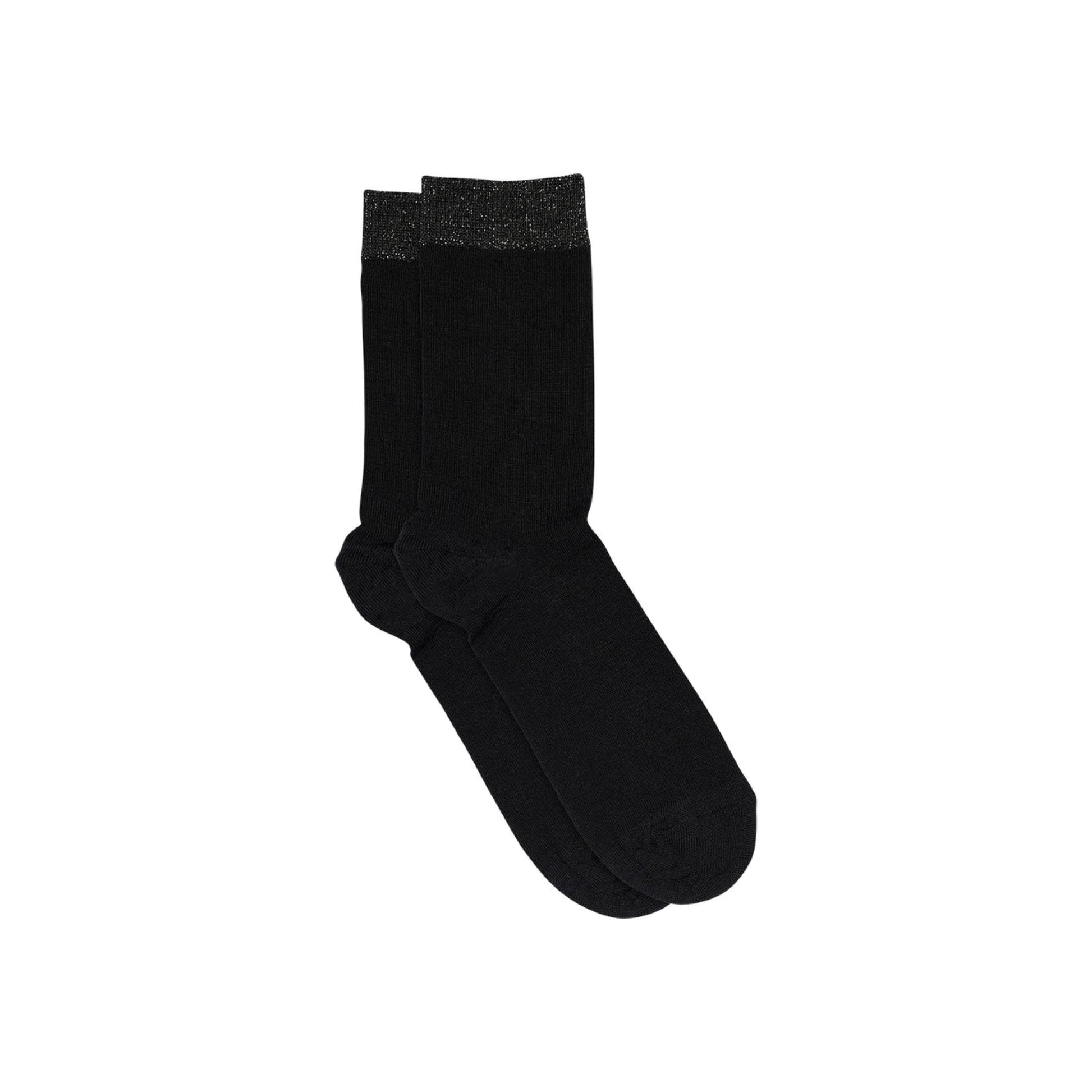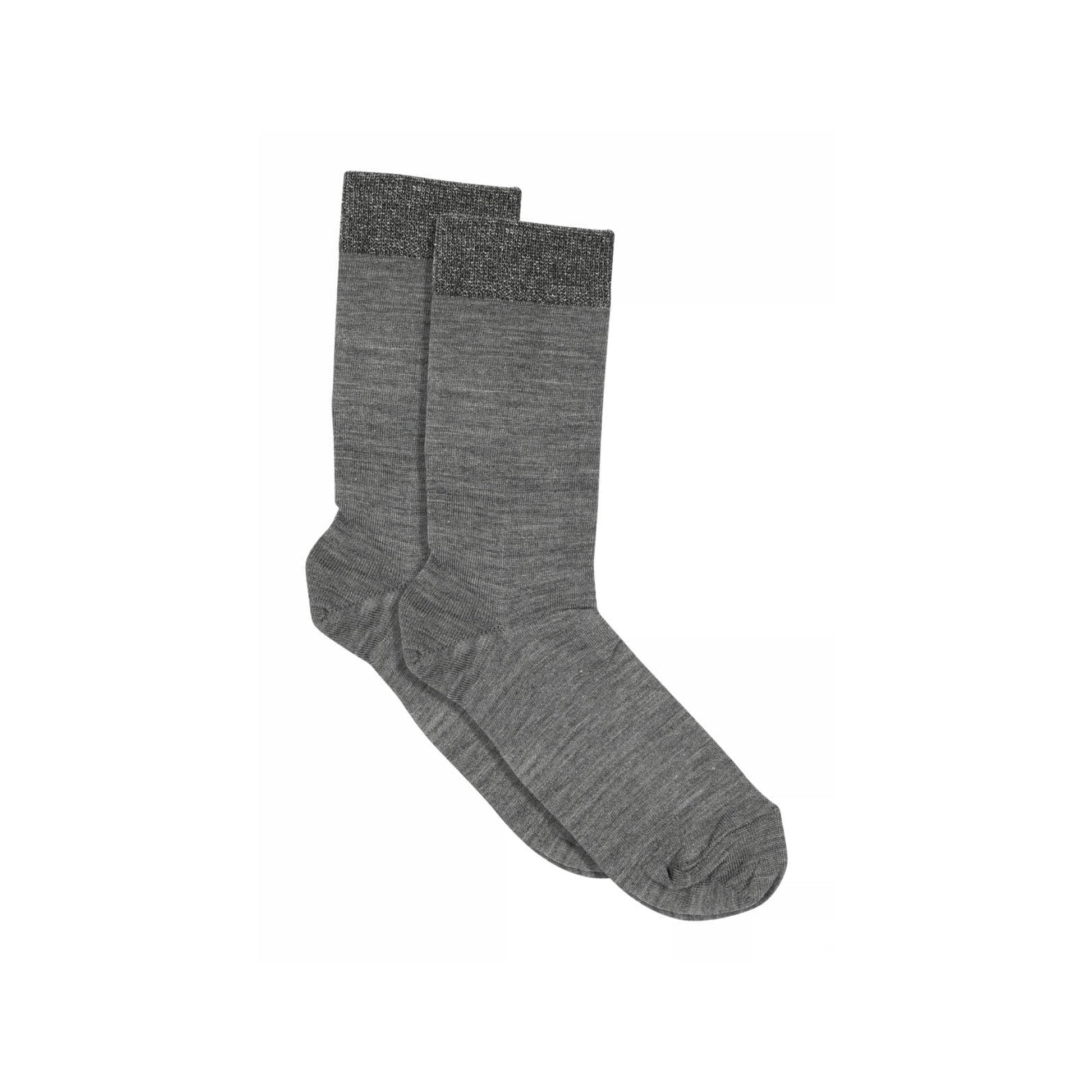 Bløde uldstrømper fra MPwoman i merinould og silke. Strømpen har en bred ribkant, med glimmer, som giver et festligt look.