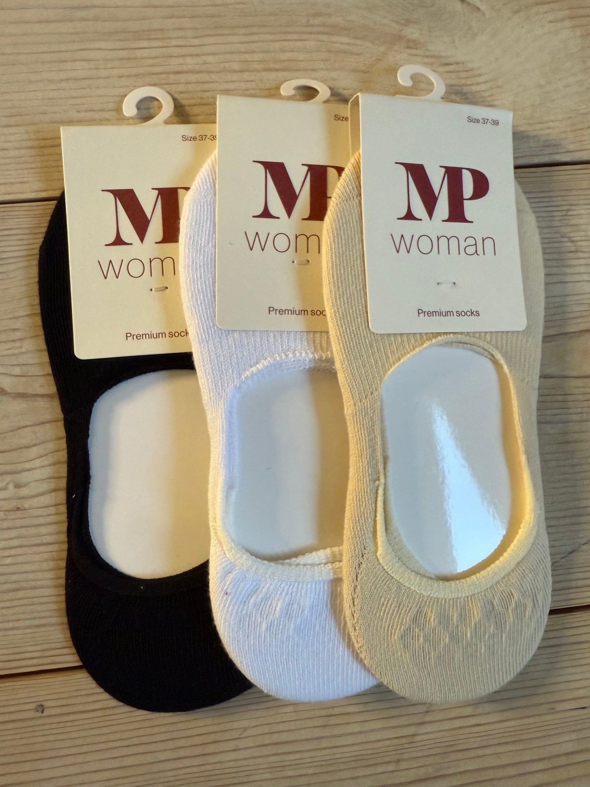 Korte "usynlige" strømper fra MPwoman, med en gummidetalje inde i hælen, som sikrer at strømperne ikke glider ned.
