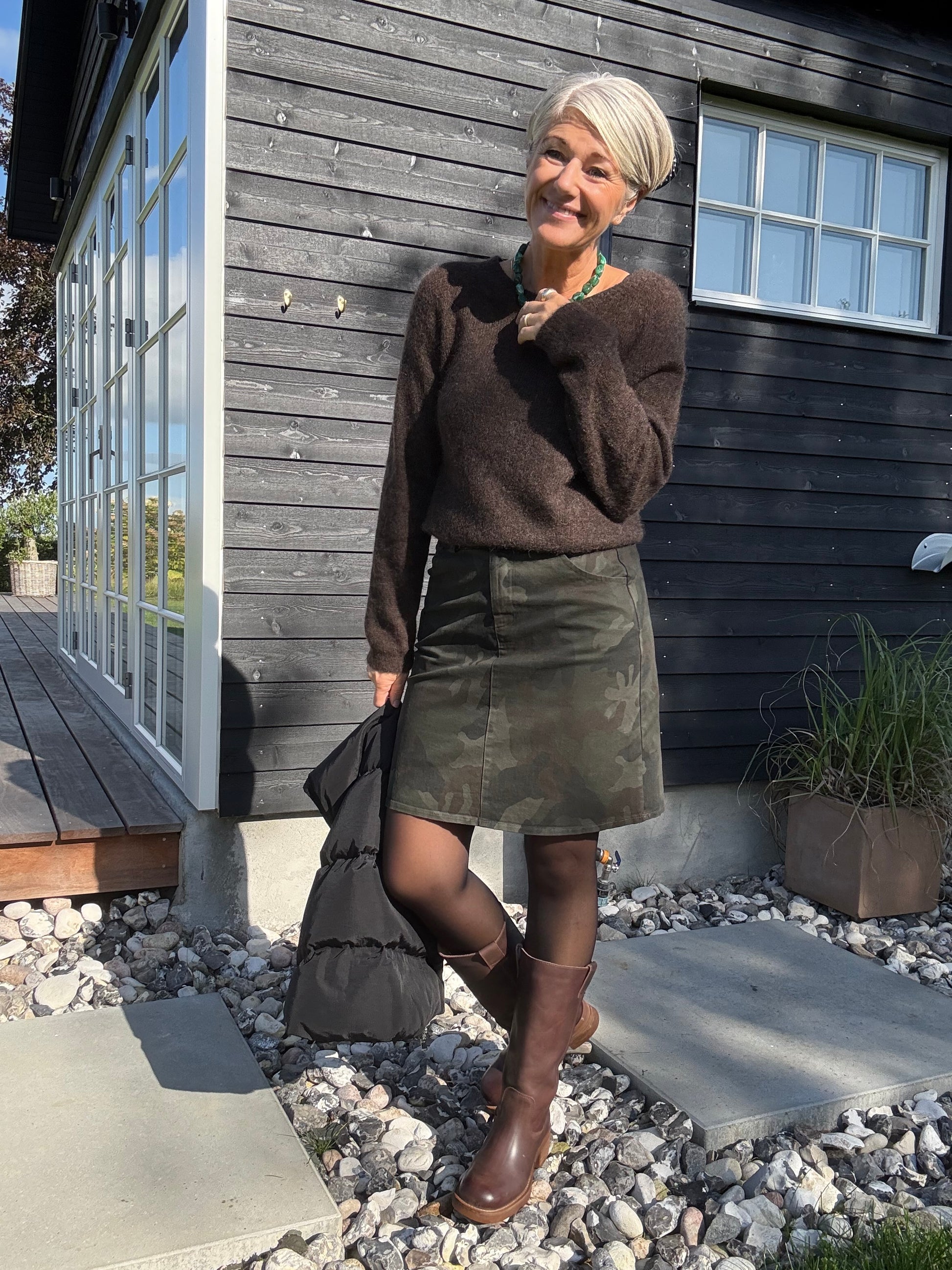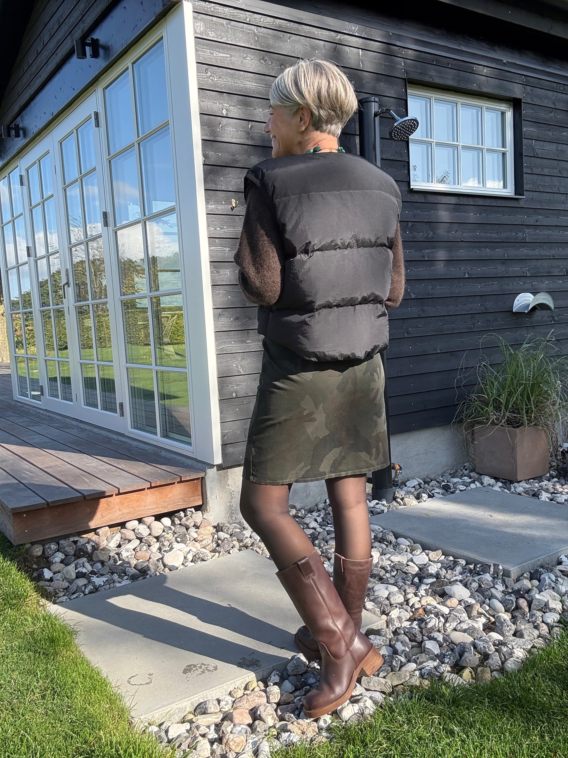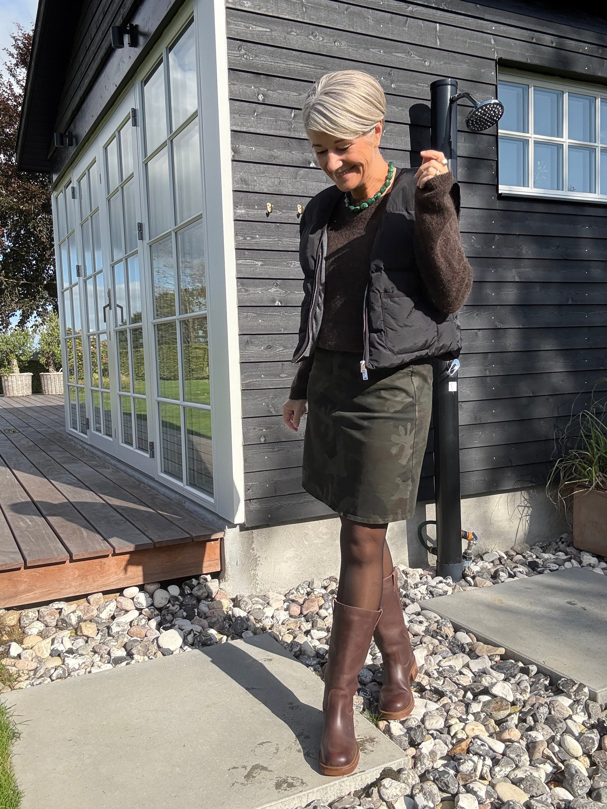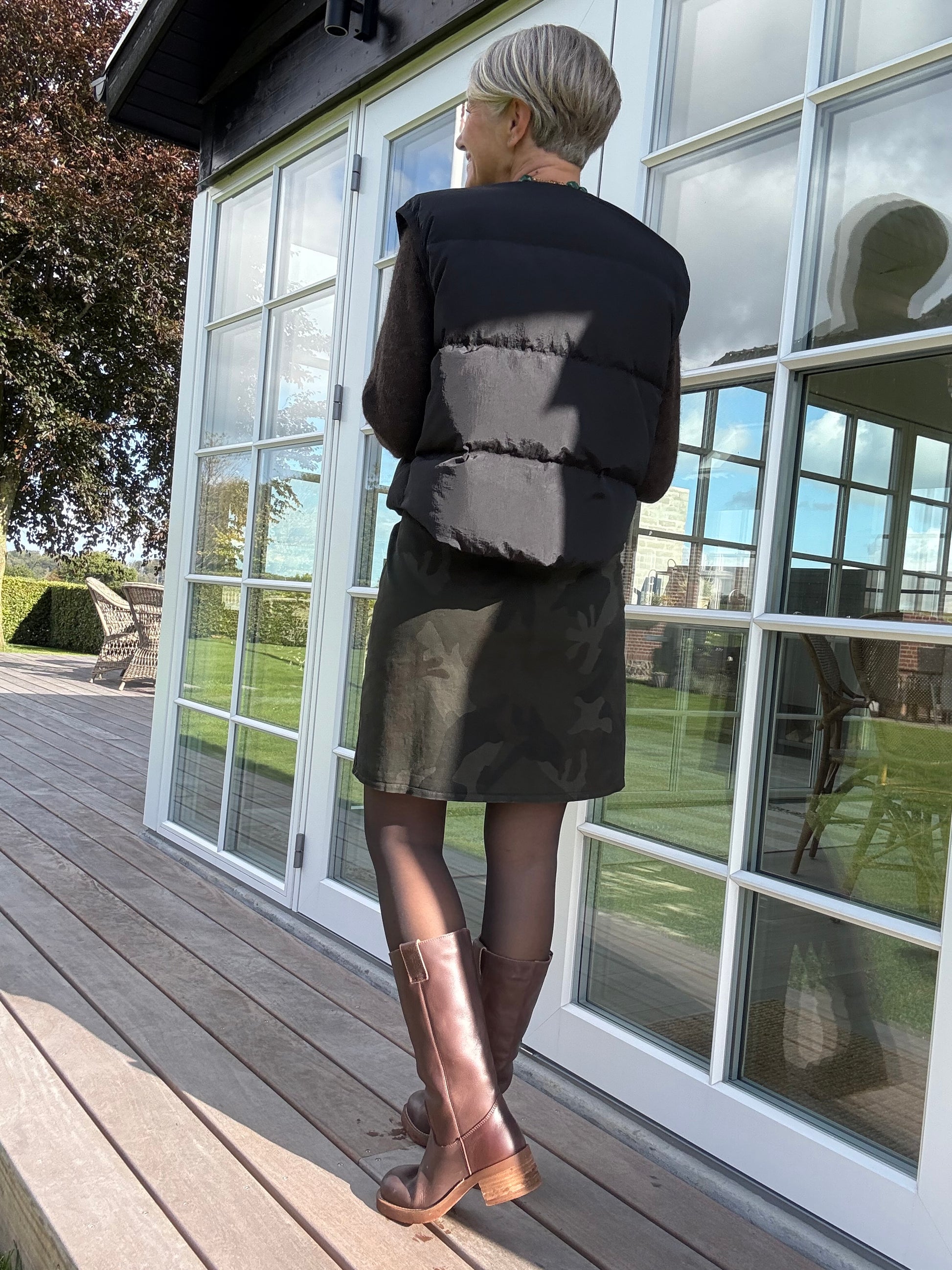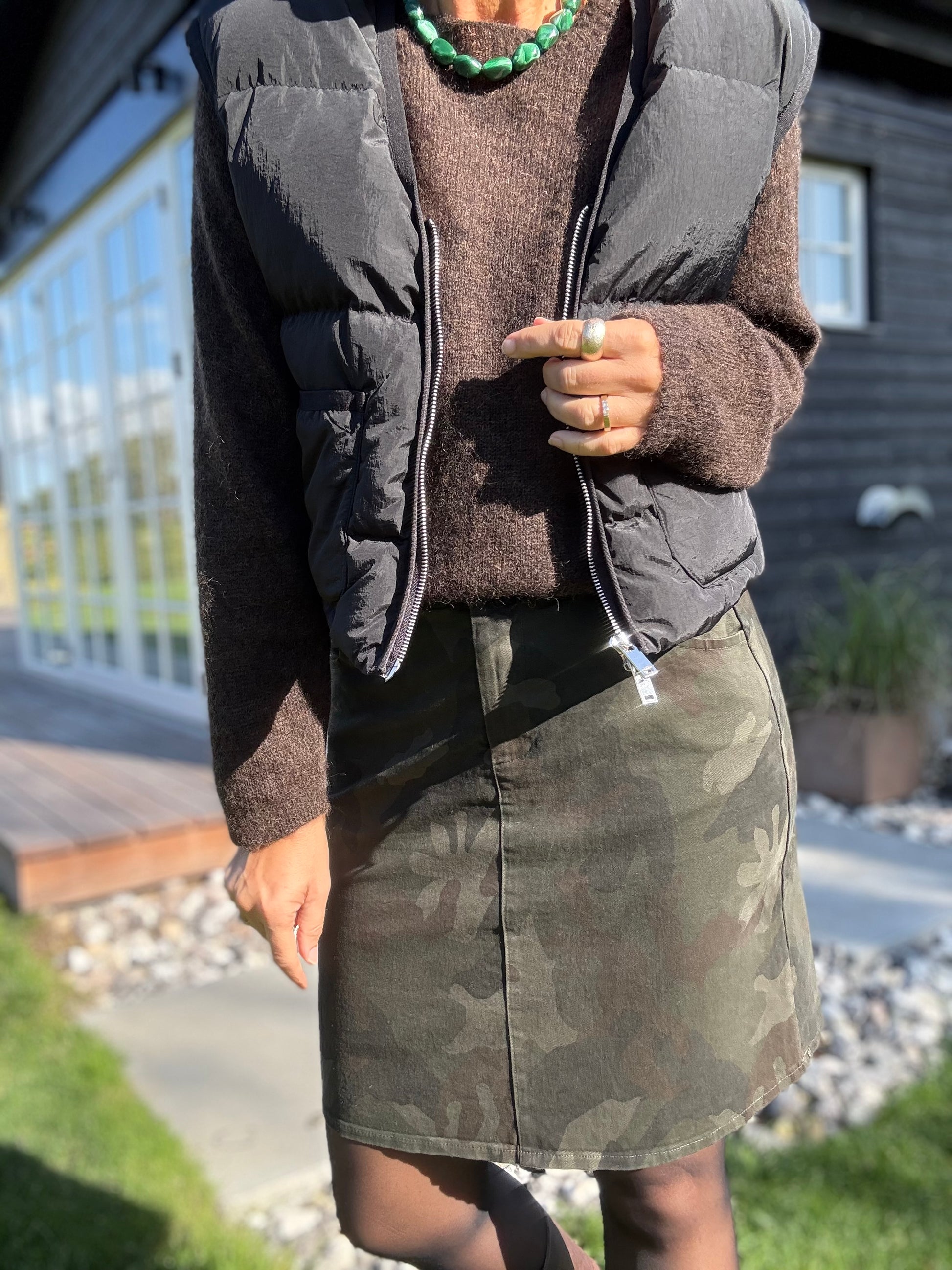 Kort nederdel med print og massere af stræk.