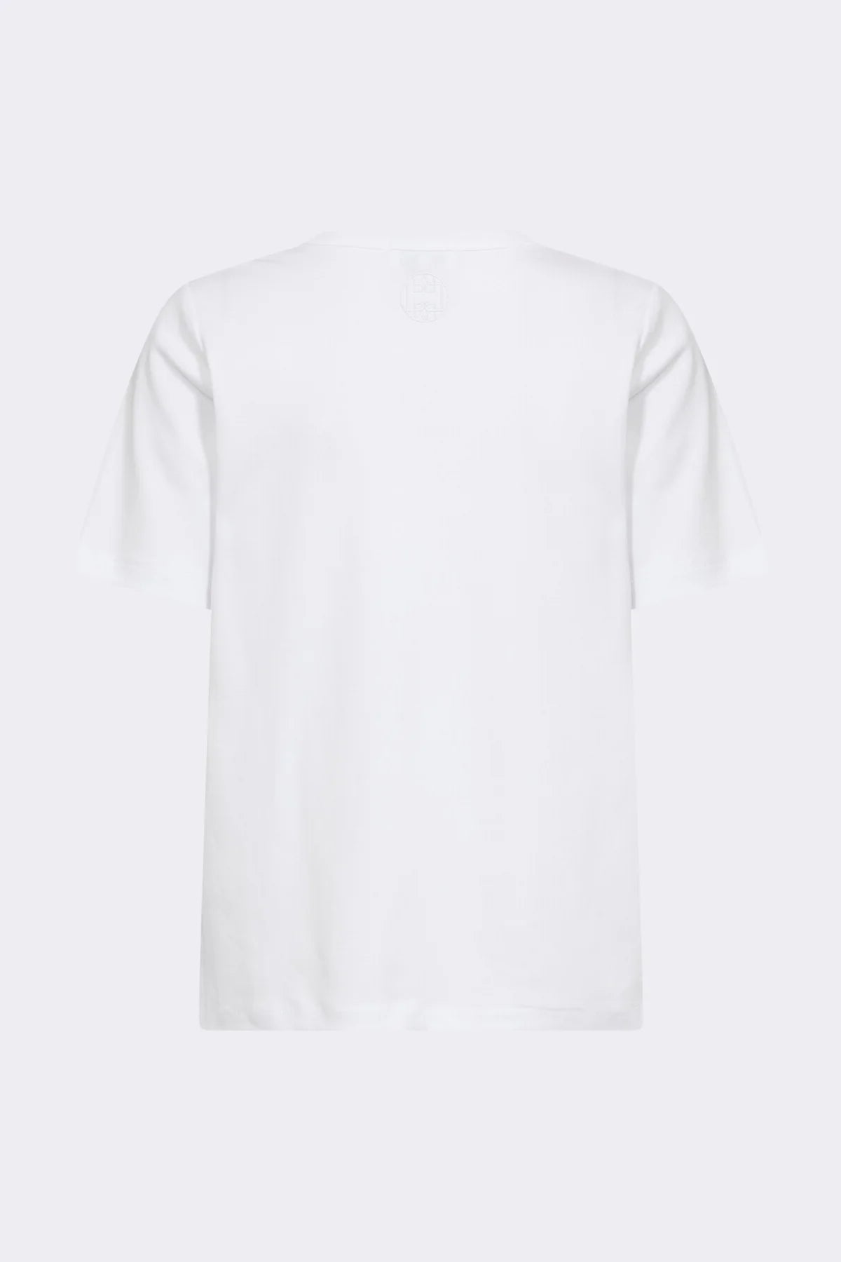 PALOMA 2 er en flot T-shirt fremstillet af 100 % økologisk bomuld. Den har en klassisk V-hals og korte ærmer med en glat tekstur, der supplerer det elegante design. Sæt den sammen med jeans eller en nederdel for et cool, afslappet look.