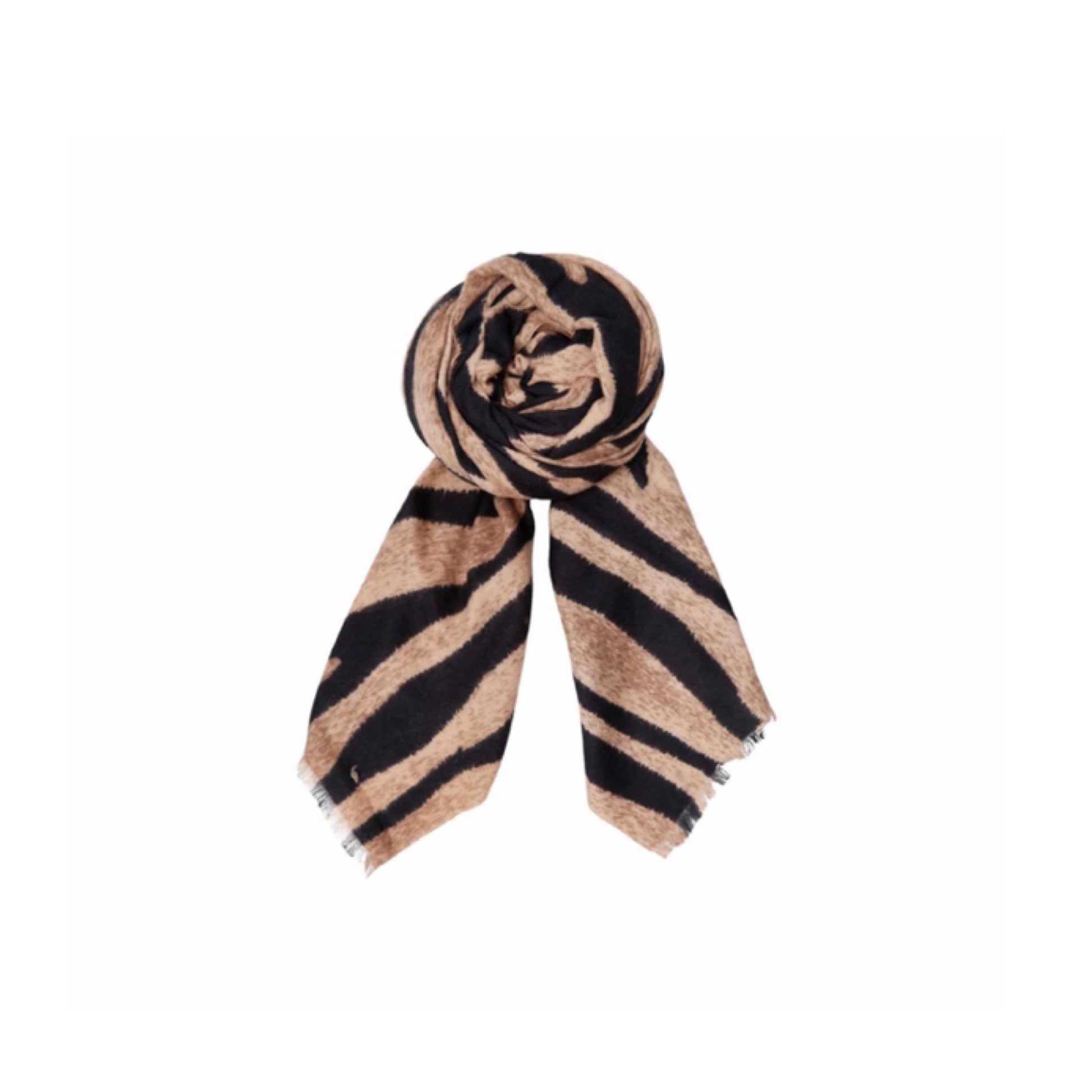 Lækkert tørklæde i den populære Latte farve med zebra striber