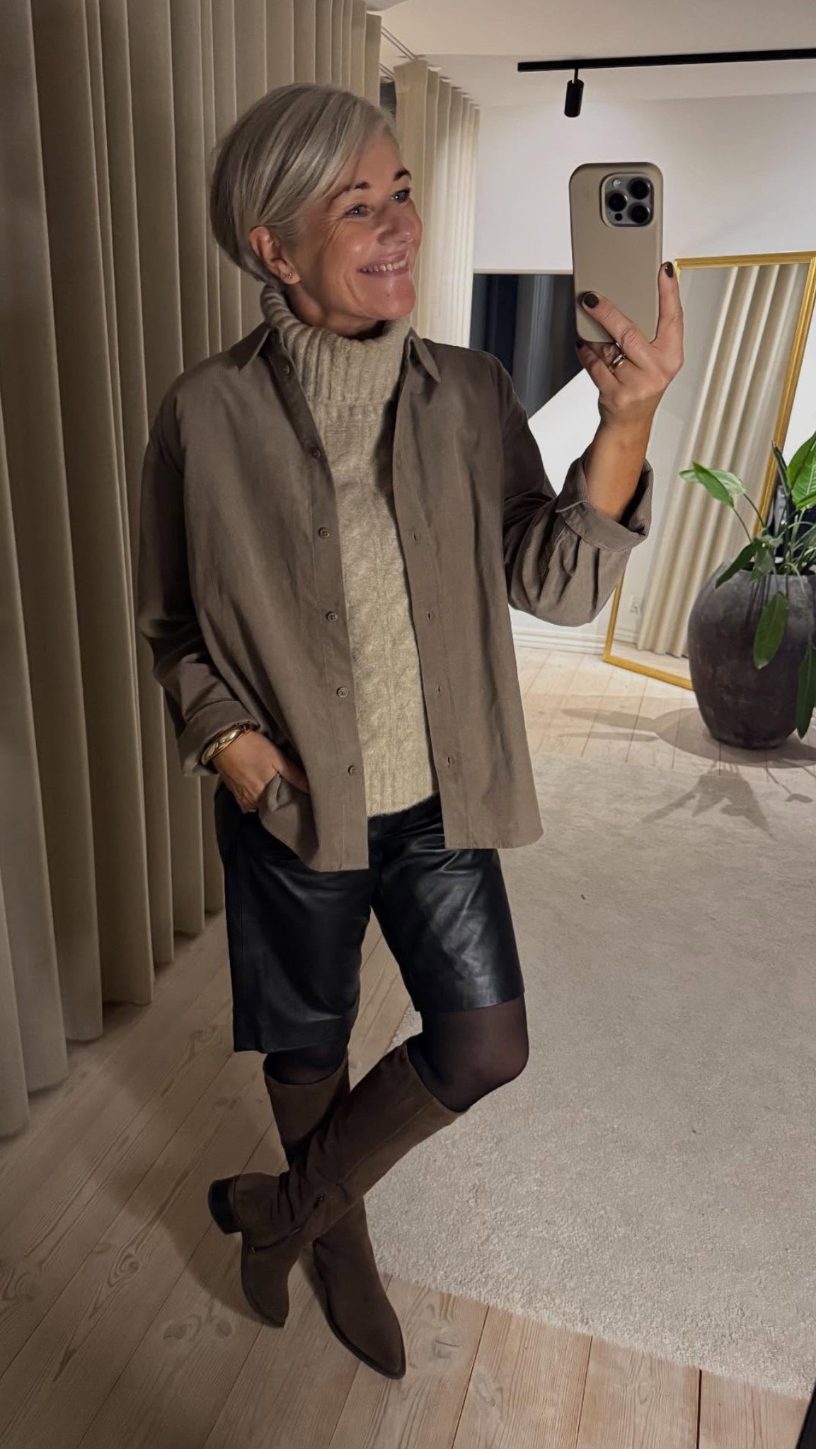 Bermuda lædershorts i blødt lammeskind. Lukkes med almindelig bukselukning i taljen. Rå kant forneden tilføjer et cool og uformelt touch. Brug dem med strømpebukser til om vinteren og bare ben i de varme måneder. Uanset om du går efter et chik look eller casual outfit til disse lædershorts passe ind.