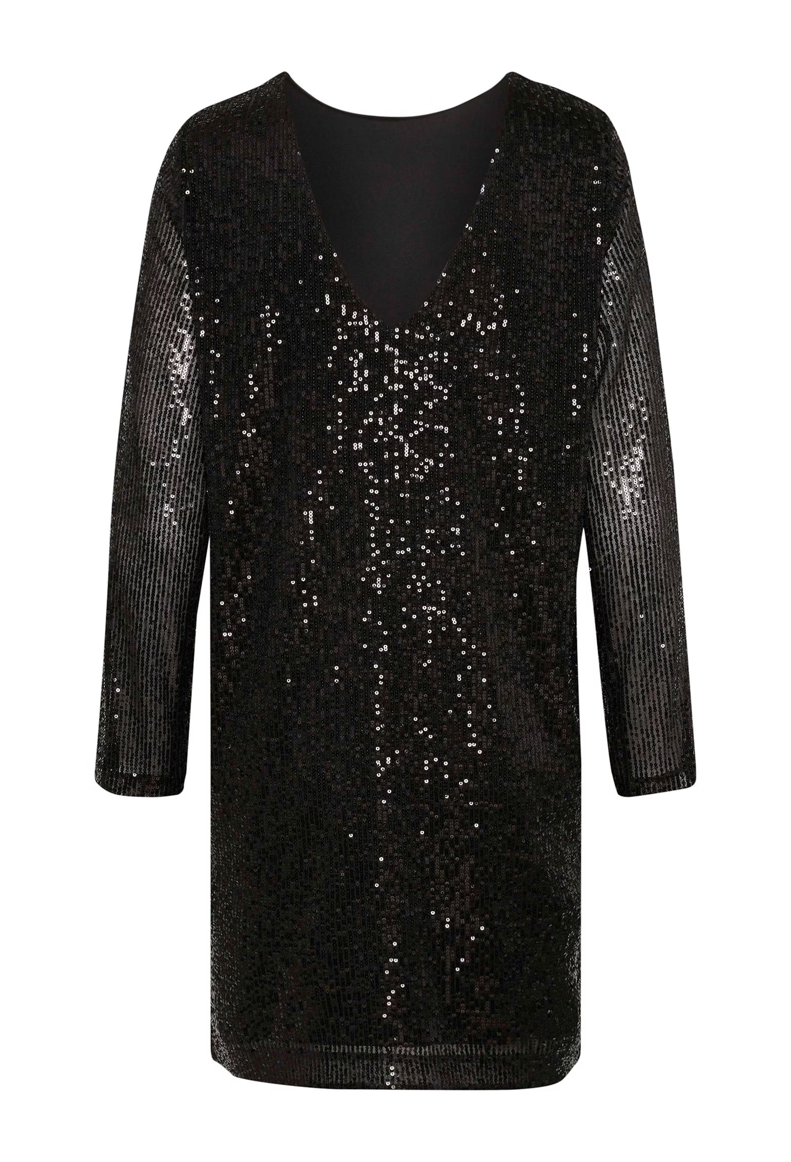 Fin palliet kjole med langeærmer og dyb ryg