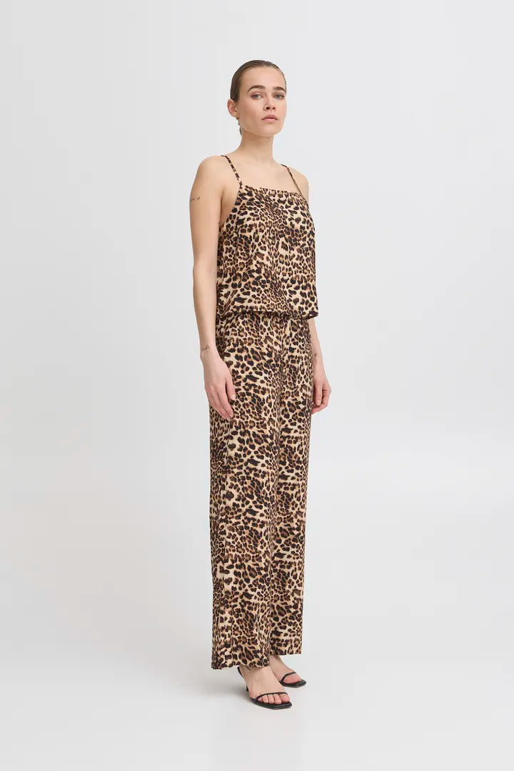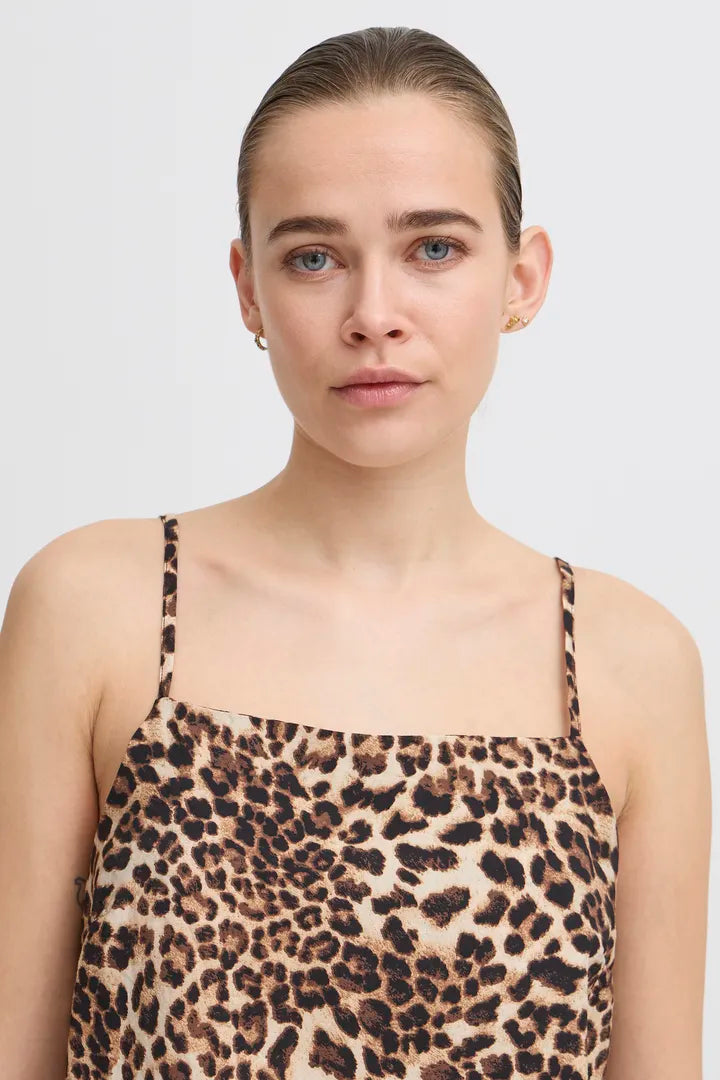Fin top fra ICHI med leo print og tynde stropper samt bindebånd på ryggen.