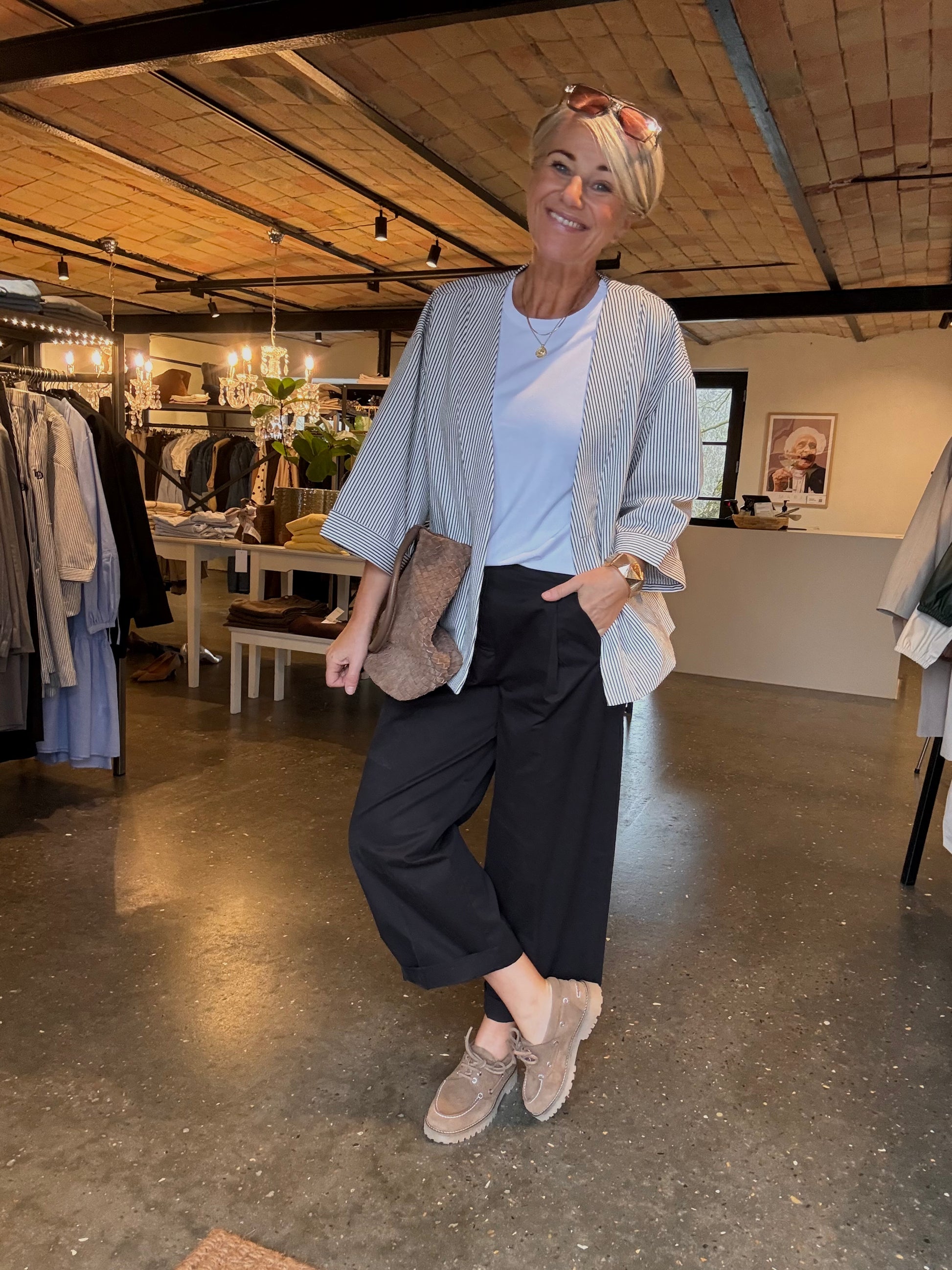 Style cardiganen med et par løse bukser og sandaler for et afslappet sommerlook, eller kombiner den med en nederdel og smykker for et mere elegant outfit. Den fungerer også perfekt med jeans og sneakers til en nem og stilfuld hverdagsstil.