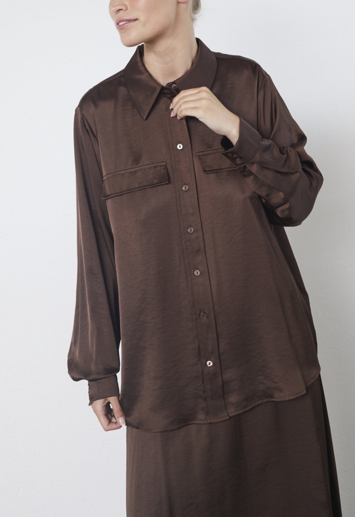 Lækker skjorte i viskose-blanding med flot glans. Blød og behagelig at have på. Brug den sammen med buksen eller nederdelen og skab et afslappet, men stilet look i den lækre kvalitet.
