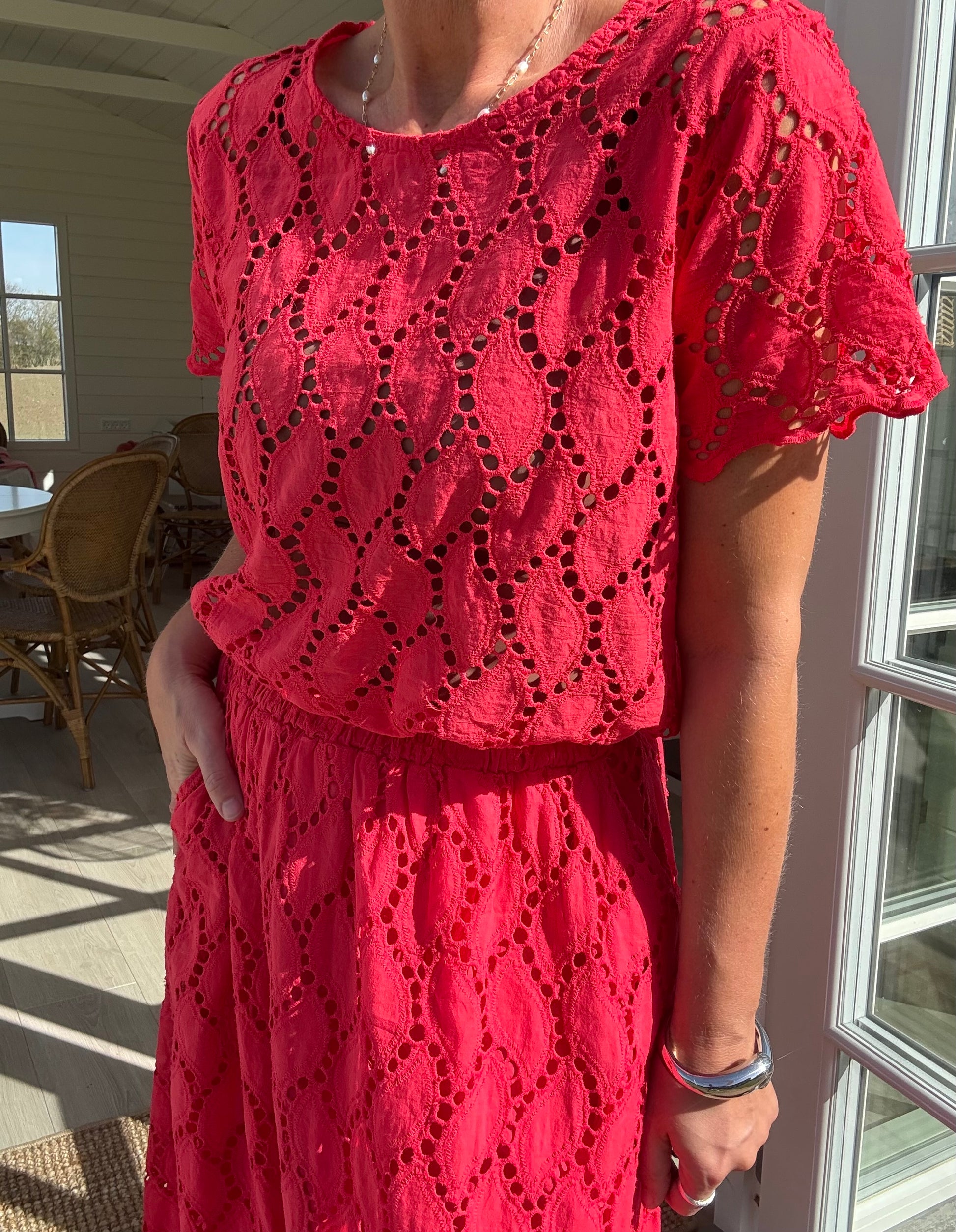 Denne kortærmede bluse i er designet til at passe til mange forskellige outfits og lejligheder.
