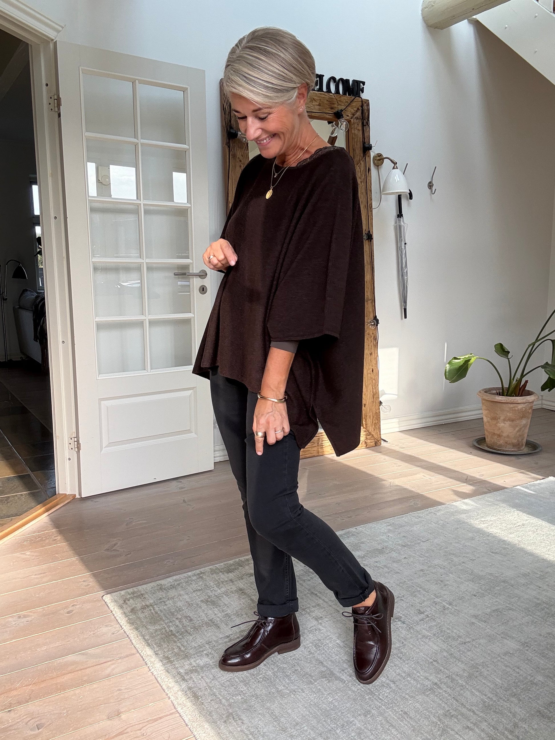 Håndlavet desert boot med snørebånd, udført i lakeret skind med rund tå. Farven er en varm, smuk kastanje-bordeaux, en signatur-nuance i denne efterårskollektion. Den er dekoreret med syninger rundt langs fronten og har en sål af rågummi.